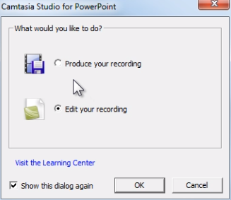 Once you’ve saved your recording Camtasia asks you if you want to edit your recording or produce your recording.
