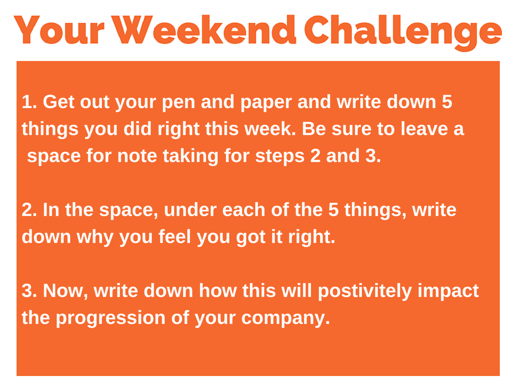1. Get your pen and paper and write down 5 things that you did right and did well this week. They can be something so strange as getting one of your members of staff to do something for you that then works out well. That means that you’ve delegated it efficiently and effectively.